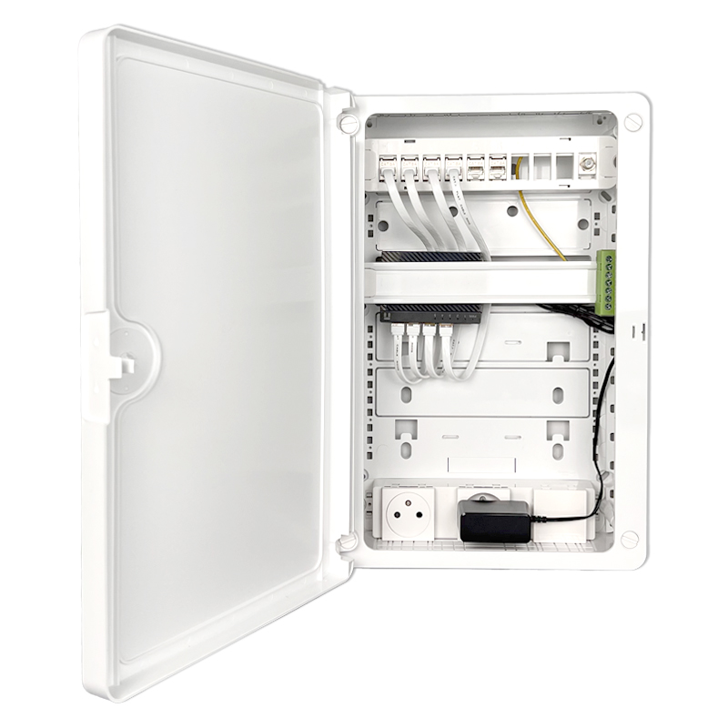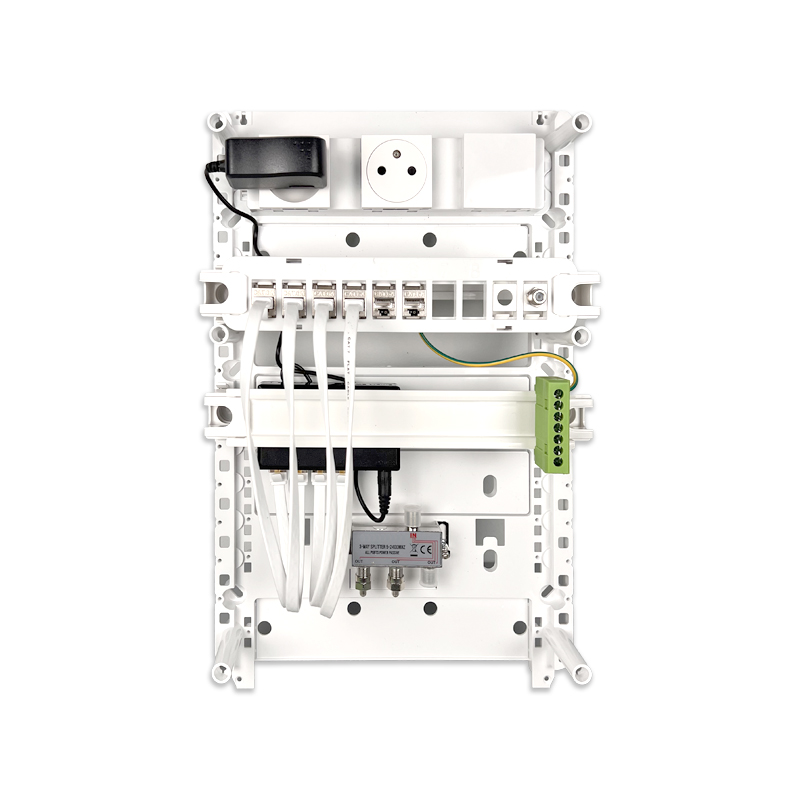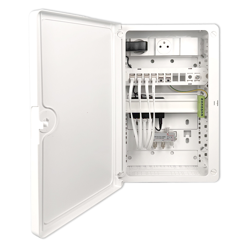 Un coffret de communication Grade 3 TV permet de centraliser et distribuer Internet, téléphonie et télévision (TNT/SAT) sur RJ45 dans toute l’habitation, avec des débits jusqu’à 10 Gbit/s, parfaitement adaptés à la fibre et aux équipements multimédias récents.