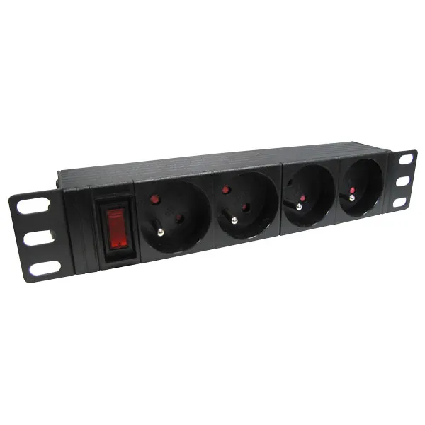 Ce bandeau de prise PDU 10 » d’alimentation électrique 1U comprend 4 prises de courant standards européennes